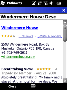 Simply tap on the title to bring up the full description page. Try a few more of the points you imported. If you bring up a description with links to other Web pages, these pages will be shown in your "Internet Browser". To return to PathAway, simply close your "Internet Browser".