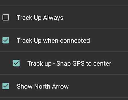 connected" and turn on "Track up - Snap GPS to center". This will