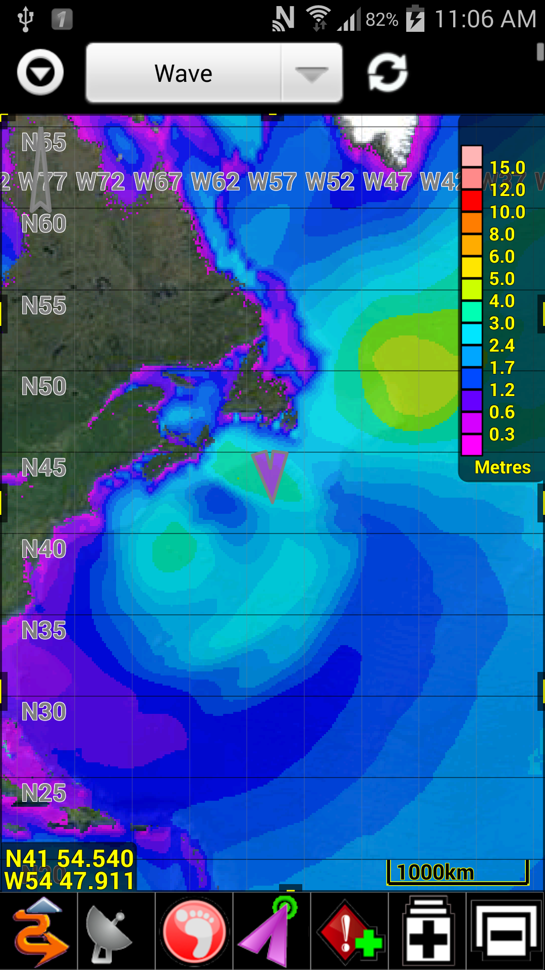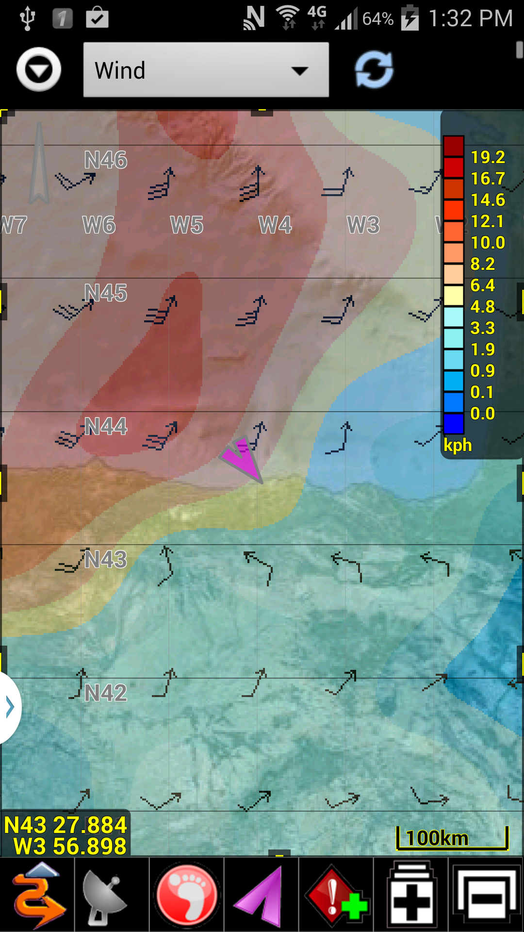 Included for FREE are 12 hour Weather Forecast overlays for Wind Speed/Direction, Temperature and Precipitation in low resolution (1.0 degree).