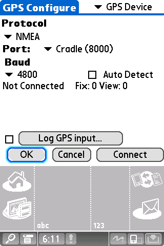Setup for GPS device. Watch GPS input stream to ensure communication