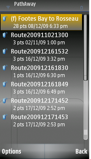Lists of your recorded tracks. Choose a track to follow for