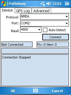 Setup for GPS device. Watch GPS input stream to ensure communication